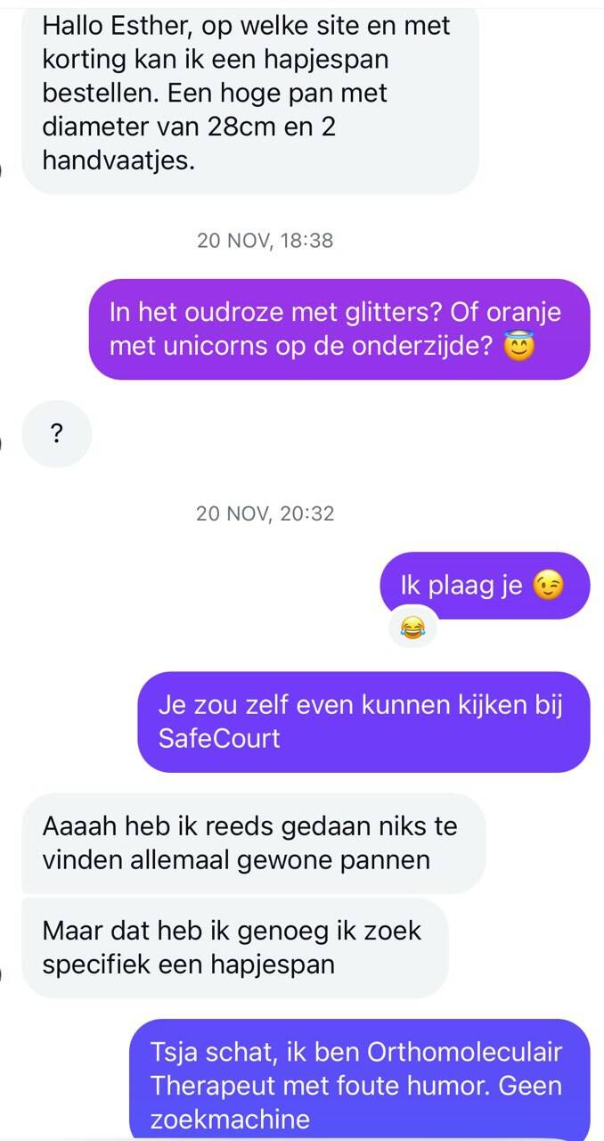 Dus toen een paar vriendinnen, die mij kennen als 'Esther, de chaotische therapeut die overal kortingscode ESTHER10 lospeutert' zeiden: